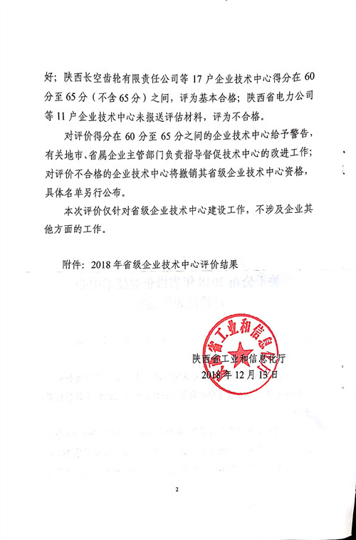 根据陕工信发[2018]315号文件《陕西省工业和信息化厅关于公布2018年省级企业技术中心评价结果的通知》,我司在此次评价中取得83.64分的喜人成绩。