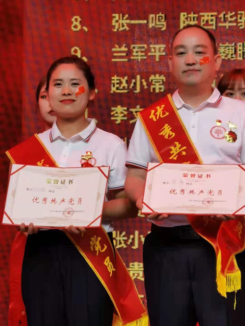 在表彰大会上,公司质量监控部职员刘丽萍和生产一线职员刘永平荣获宝鸡市金台区非公经济组织“优秀共产党员”荣誉称号。