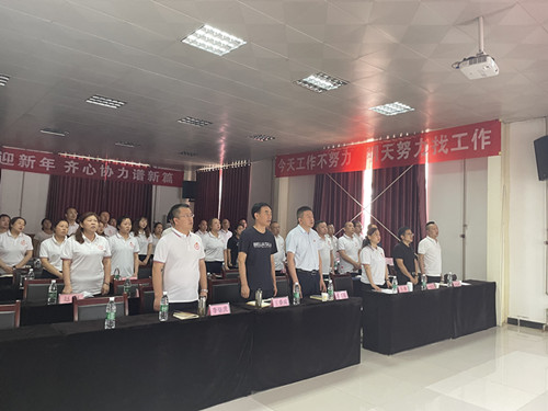 大会开始,全体人员起立齐唱国歌;