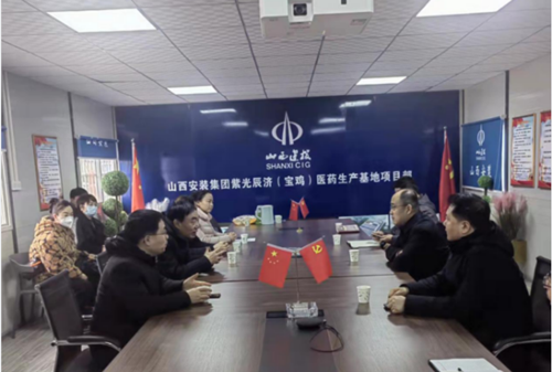 2023年2月15日上午,宝鸡市政府副市长张昭一行专程来到“紫光辰济(宝鸡)医药生产基地”建设项目现场进行走访调研,公司总经理王睿成陪同调研并参加座谈。